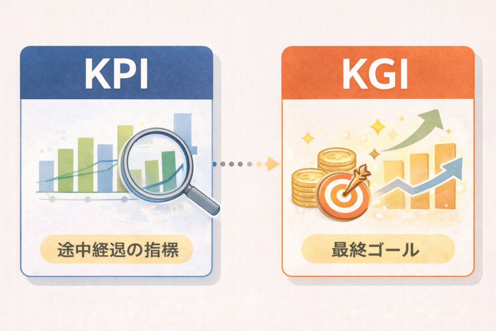 KPIとは何かをマーケティング初心者向けに分かりやすく解説。KGIとの違い、売上との関係、実務で使えるKPI設計の考え方まで整理します。
